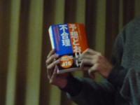 ▲夕食を済ませた後は、追いコンにおける最大イベントのひとつ、卒業生への記念品贈呈。今年も趣向をこらしたプレゼントが飛び出しました。